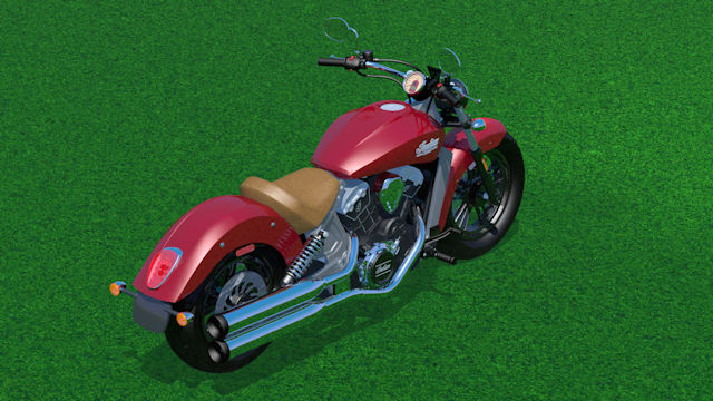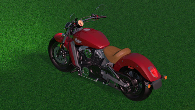 Currently have 2015 Indian Scout. This is a CGI model bought at cgtrader.com, not perfect after 3DS conversion and reassembly into POV-Ray but very good resemblence.